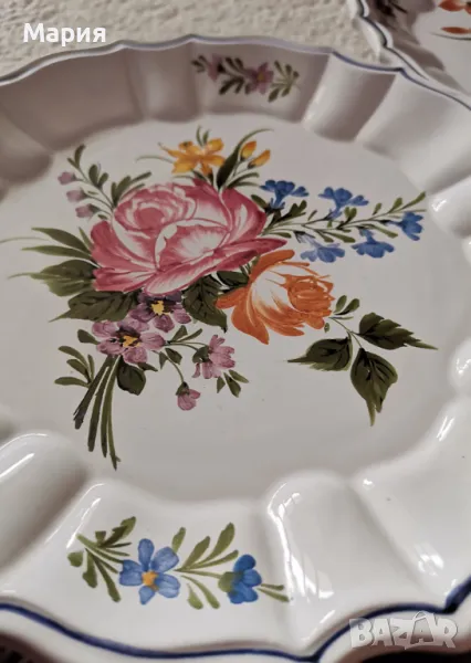 Италиански керамични чинии Bassano Handpainted, ръчна изработка, ръчно рисувани в богата цветова гама и чудесен флорален декор, отлично състояние, диаметър 21см.