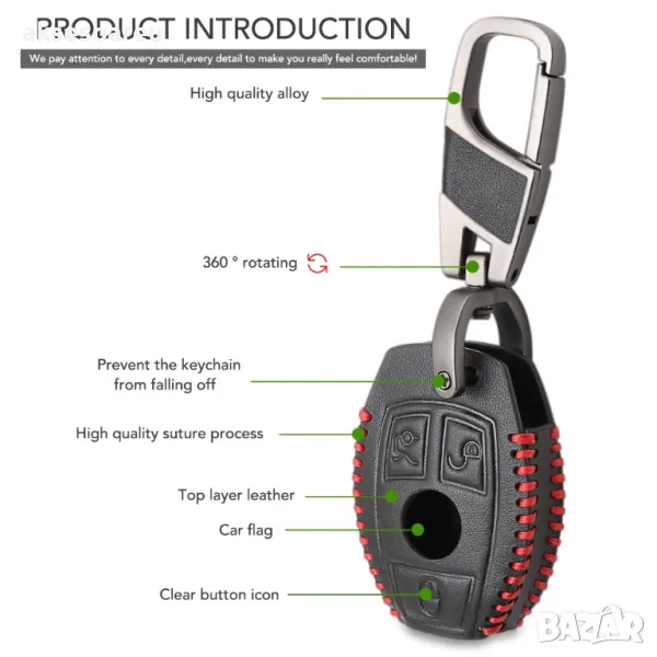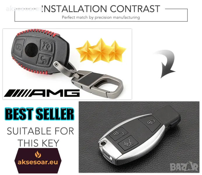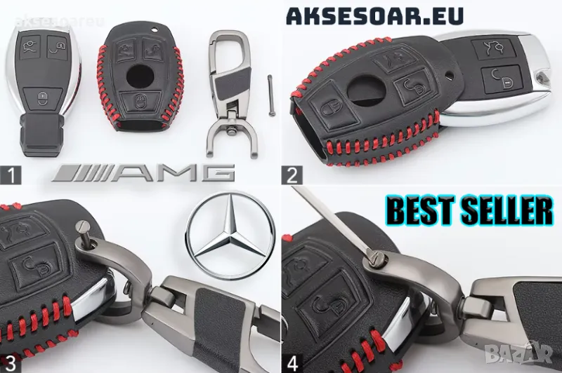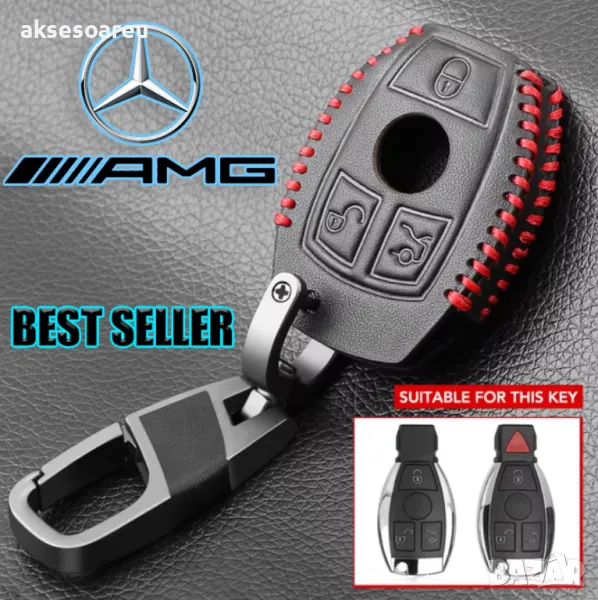 Луксозен кожен предпазен калъф за автомобилни ключове на Мерцедес Бенц от естествена кожа ключодържа → Обява 47587757