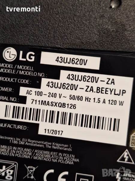 MAIN BOARD ,EAX67133404(1.0), for, LG 43UJ620V 43inc DISPLAY RDL430WY(LDO-304) → Обява 47588083