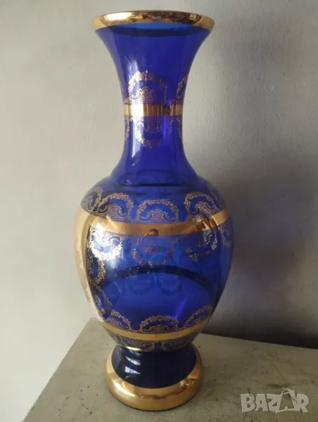 Стъклена ваза Бохемия.Декоритана със златна боя.