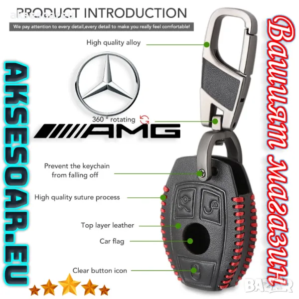 автомобилни ключове на Мерцедес Бенц от естествена кожа ключодържател за ключ на Mercedes Benz AMG W203 W210 W211 W124 W202