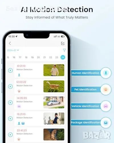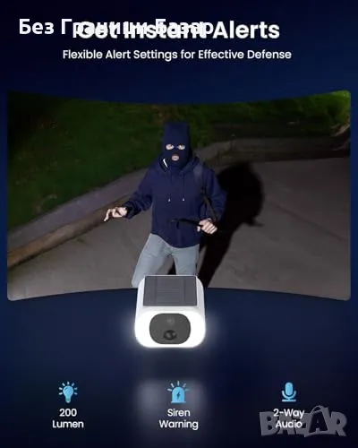 Интелигентен PIR датчик за движение – Активира светлината и сирената при засичане на движение, с известия директно на телефона.