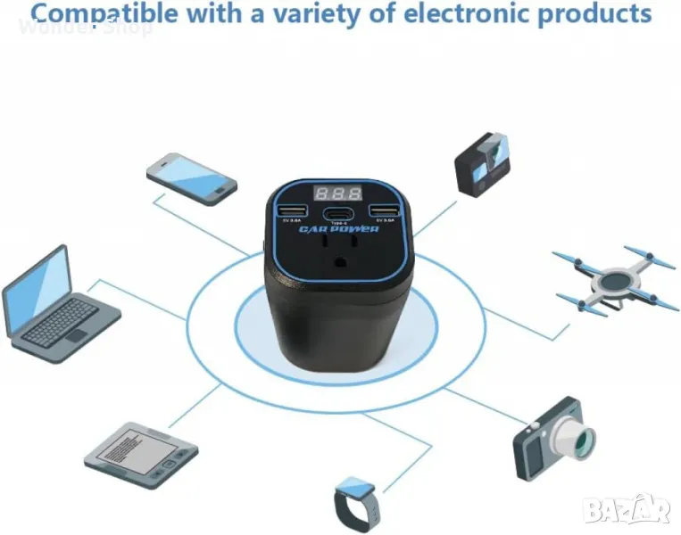 Ефикасно и безопасно захранва 220V уреди – телевизор, таблет, радиокасетофон и др. 📺🎮