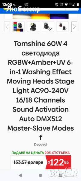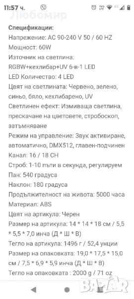Когато става дума за професионална LED сценична светлина, тази светлина може да бъде една от първите няколко. ;RGBW+Amber+UV ;6-в-1 и супер ярък LED, 4 режима на управление и дизайн с движеща се глава могат да ви накарат да изпитате грандиозни и великолепни светлинни ефекти на вашето парти, банкет, училищно шоу и сватбена церемония, така че това наистина е идеален избор за вашата домашна сцена. Избирайки го, изберете своя собствена сцена и цветен живот.РАЗКОШНА СВЕТЛИНА: 4 части 12W супер ярка;RGBW+кехлибар+UV;6-в-1 LED може да създаде прекрасни и зрелищни светлини с ефект на измиване за сцена на закрито. Представете си колко красиво ще бъде, когато вашето парти е изпълнено с 6 различни динамични цвята.