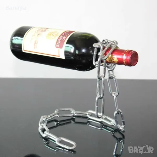 Нестандартна поставка за бутилка вино синджир в сребрист цвят. Метална стойка подарък сувенир, който ще бъде стилно допълнение към интериора във всеки дом. Нестандартна идея за подарък.