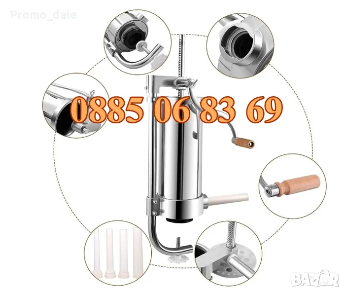 Вертикалната пълначка за наденички и колбаси е с капацитет 4 килограма - неръждавейка.