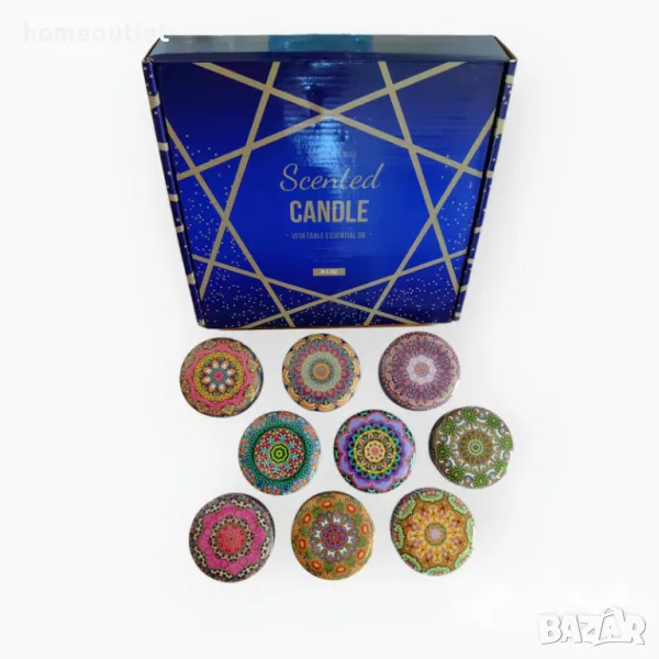 Всяка свещ има различен дизайн в ярки нюанси на розово, зелено, синьо, жълто и оранжево.