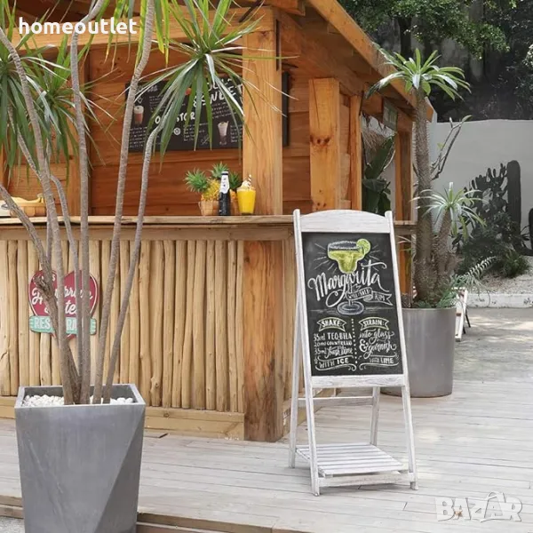 Таблото има A-образен дизайн, който е много стабилен, със сгъваем рафт, осигурява допълнително място за съхранение на растения, книги и списания, за да спести място