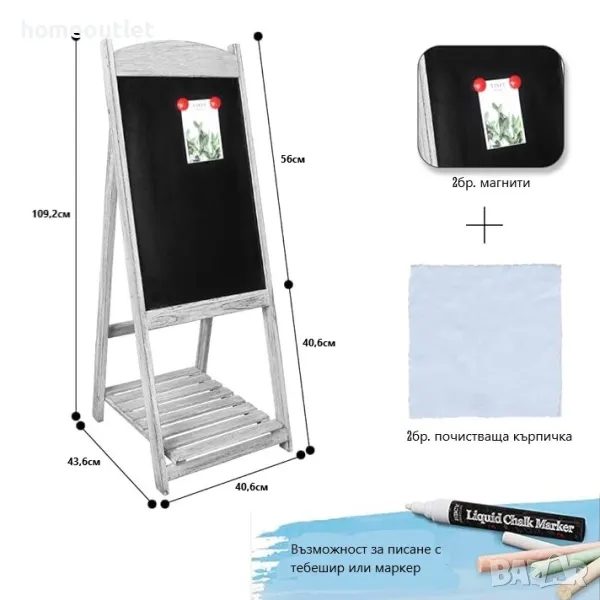 Таблото с тебеширена дъска има магнитна повърхност и съдържа 2 магнита, можете да го използвате за публикуване на снимки, менюта, бележки, съобщения и други, супер практично и полезно