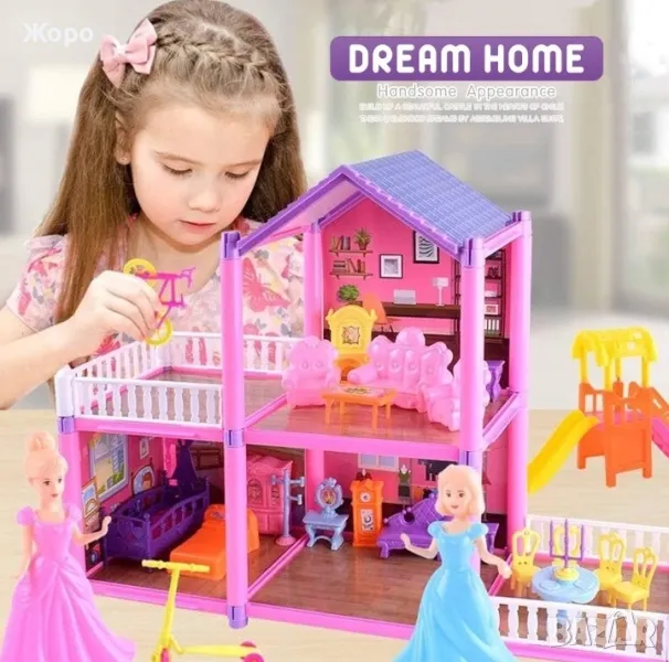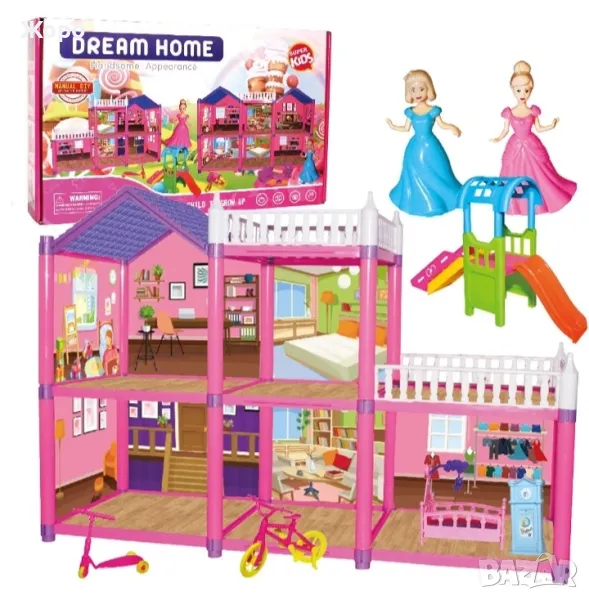 Сглобяема голяма къща за кукли с мебели и фигурки 062343