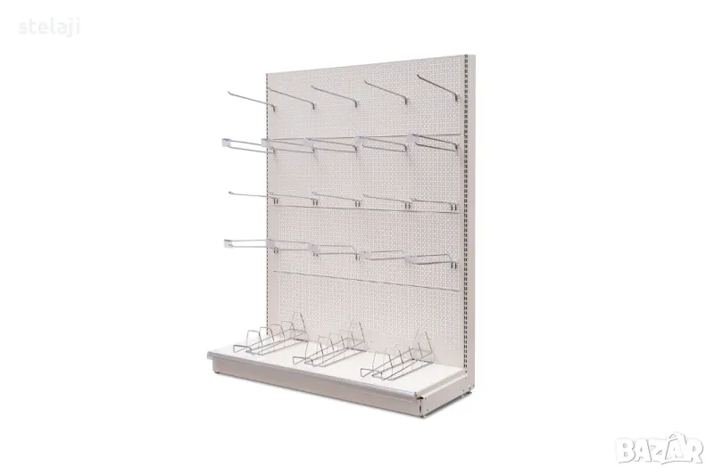 Предлагаме метални стелажи за аптеки със стъклени рафтове с различни размери. Могат да се комбинират в долната част с шкаф от ПДЧ или МДФ по желание на клиента, над него рафтове - стъклени, метални плътни или телени.