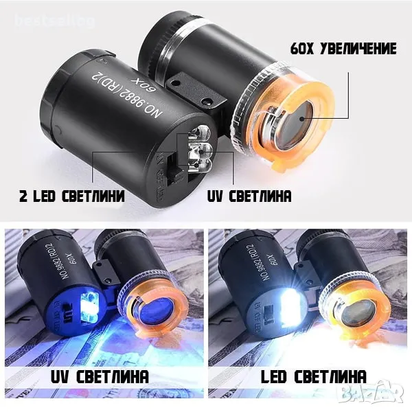 Микроскоп с UV и LED осветление лупа голямо увеличение 60X платки деца