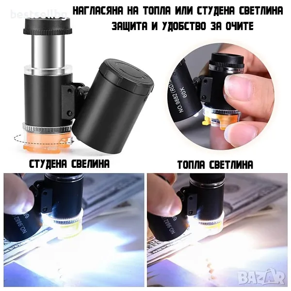 - Широко приложение: Идеален за проверка на банкноти, бижута, монети, марки, печатни платки, растения, насекоми и много други.