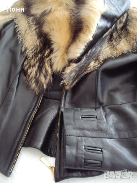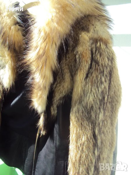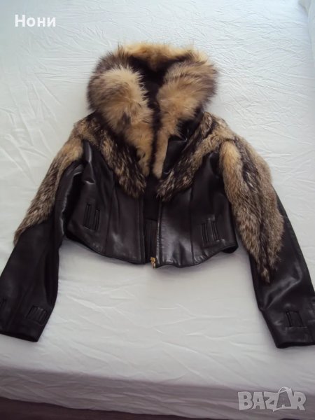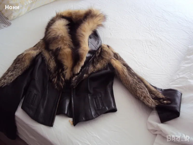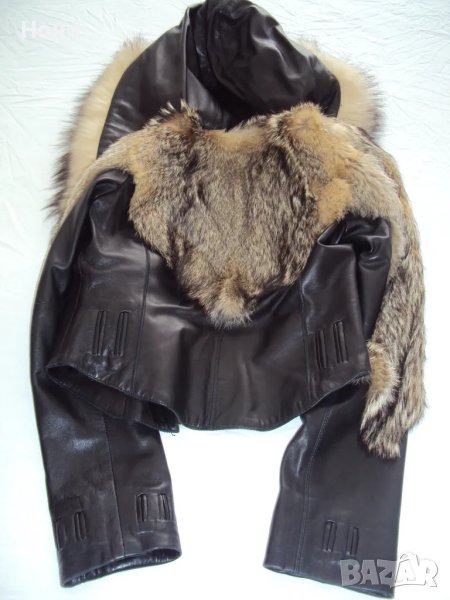 Естествена кожа с богата яка от козина от лисица. Оригинално. Купено от чужбина. Състояние НОВО, защото е обличано до пъти. На ръкавите също има апликация от естествен косъм. Дамско луксозно марково кожено яке Punto. Ръст С. Има сатенена подплата. Късо вталено яке. Размери :От подмишница до подмишница 47 см .Цяла дължина 50 см. Дължината на ръкава е 72 см. НО това е измерено от качулката просто модела е такъв, че няма точен размер на ръкава. На последната снимка е качено!