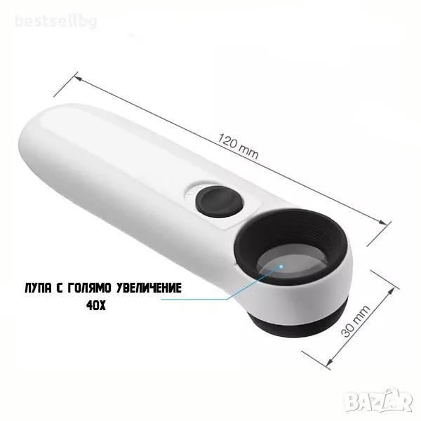 Ръчна увеличителна лупа голямо увеличение 40X LED осветление за бижута