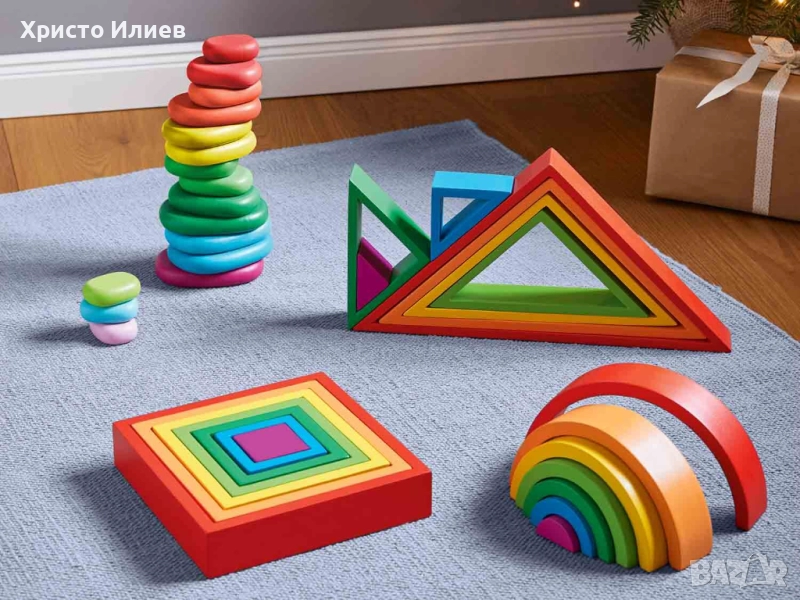 Дървен конструктор Пъзел Камъни за подреждане Монтесори финна моторика
