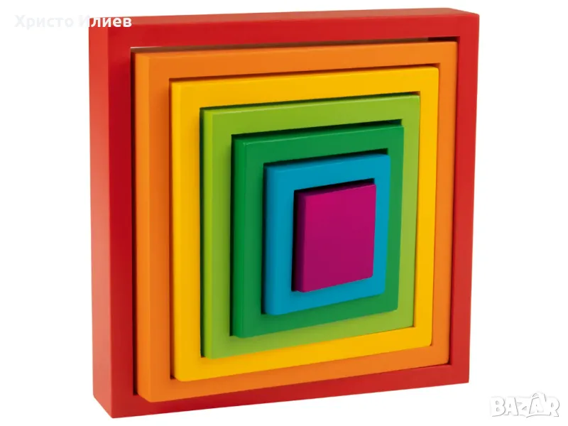 Дървен конструктор Пъзел Квадрати за подреждане за сръчност Монтесори