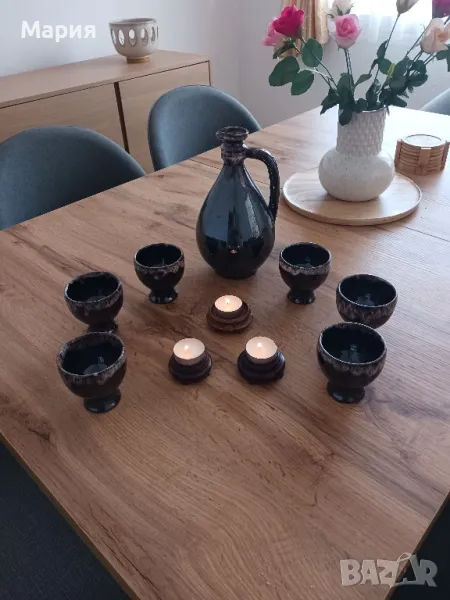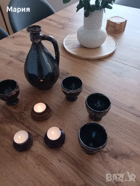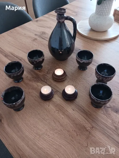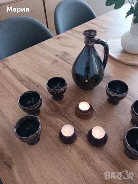 Сервиз за вино от седемдесетте плюс 3броя свещници → Обява 47593464