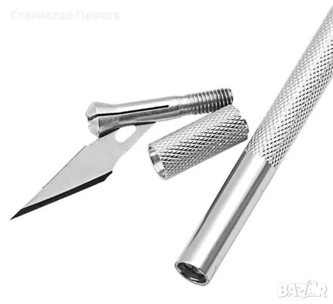Технически/канцеларски/ скалпел с 1 един + /5броя резервни резци/. → Обява 47593773