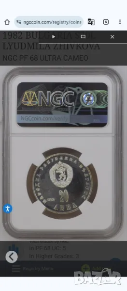 20лв 1982 Людмила Живкова NGC PF68 ULTRA CAMEO → Обява 47595338