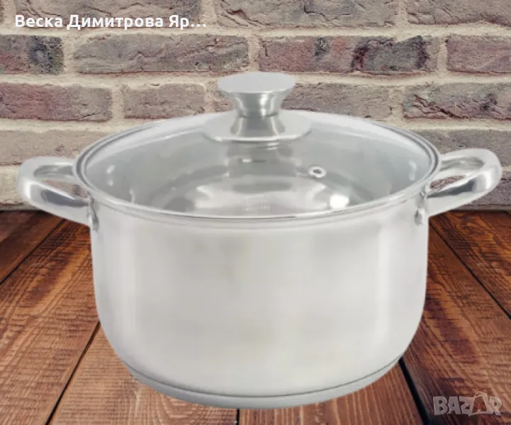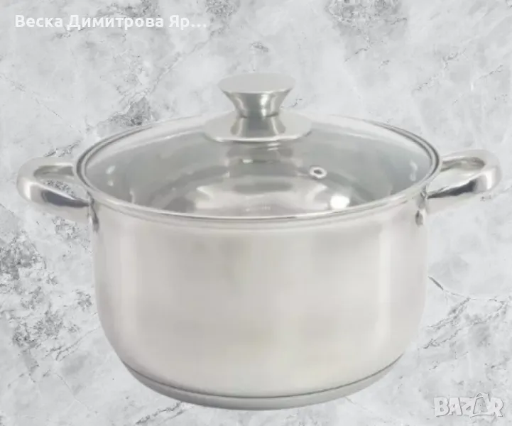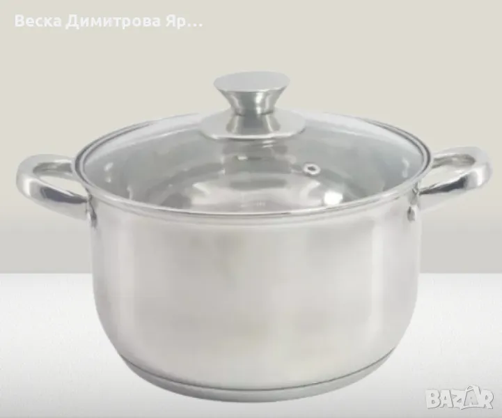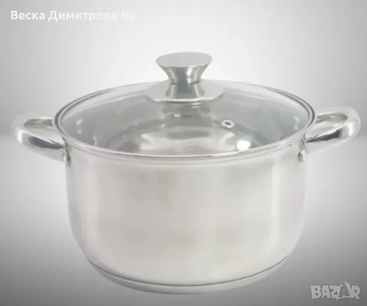 Тенджера със стъклен капакМатериал: висококачествена неръждаемастоманаМногослойно дъно. Капак от закаленостъкло с отвор за пара. Мерителна скала заобем. Подходяща за всякакъв тип котлони,включително и индукционни. Подходящаза съдомиялна машинаРазмери: 16x10см./1.8л; 18x11см./2.5л.; 20x12см./3.4л.; 22x13см./4.5л.; 24x14см./5.8л.; 26x15.5см./7.5л.