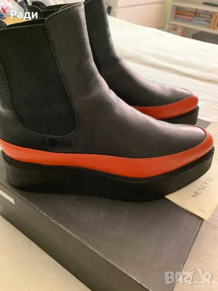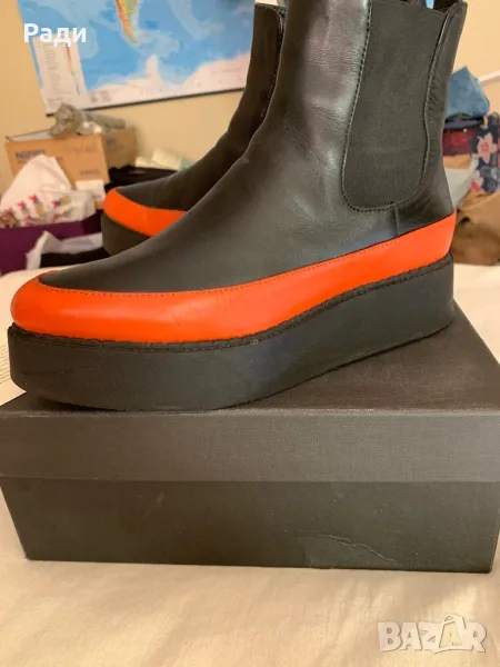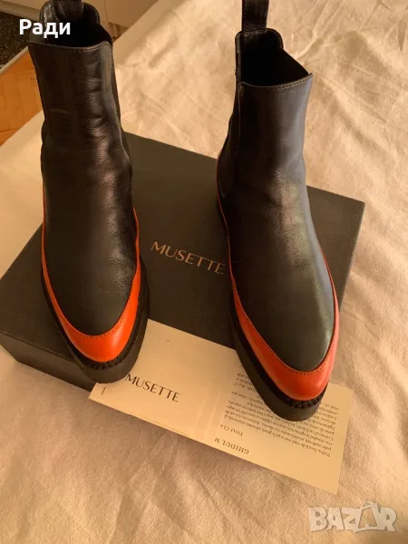 Боти естественна кожа стоят много елегантно черни с оранжев Кант номер 37 но са уголемени отговарят на 38 номер стеснени отпред видно от снимките