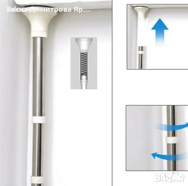 Материал - неръждаема стомана и пластмаса;Капацитет на товароносимост - до 5 кг;Вид - телескопична;Размери - 26см х 19.5см (разтяга се от 78см до 275см).