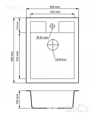 Възможност за добавяне на смесител, приставка за измиване на чаши, диспенсър за сапун и други аксесоари.