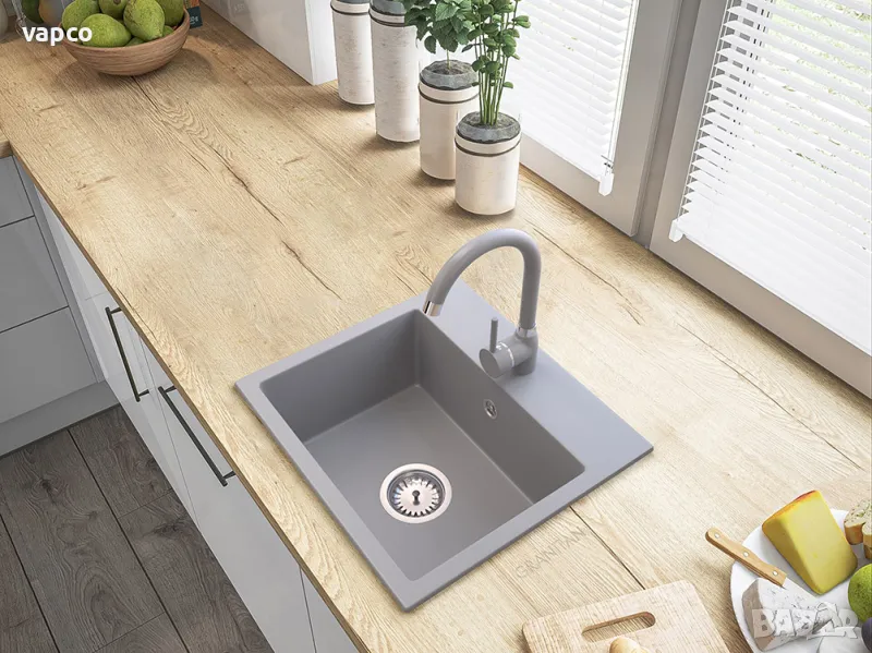 Широката гама от цветове ви позволява да съчетаете идеално цвета на мивката с плота, както и друго кухненско оборудване