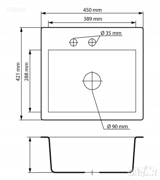 Възможност за добавяне на смесител, приставка за измиване на чаши, диспенсър за сапун и други аксесоари.