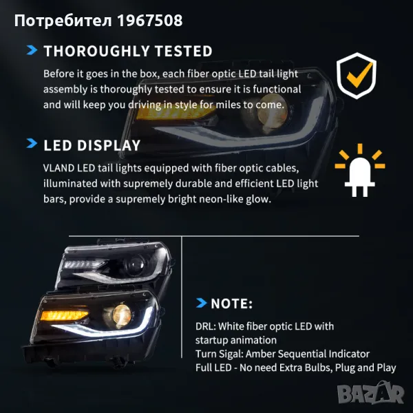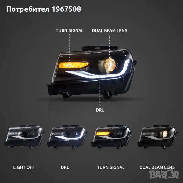 Комплект фарове с динамични мигачи за Chevrolet Camaro 2014 - 2015 → Обява 47598195