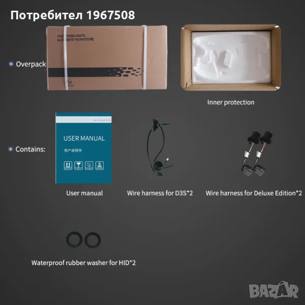 Къси/дълги светлини: D2H (не са включени в комплекта)