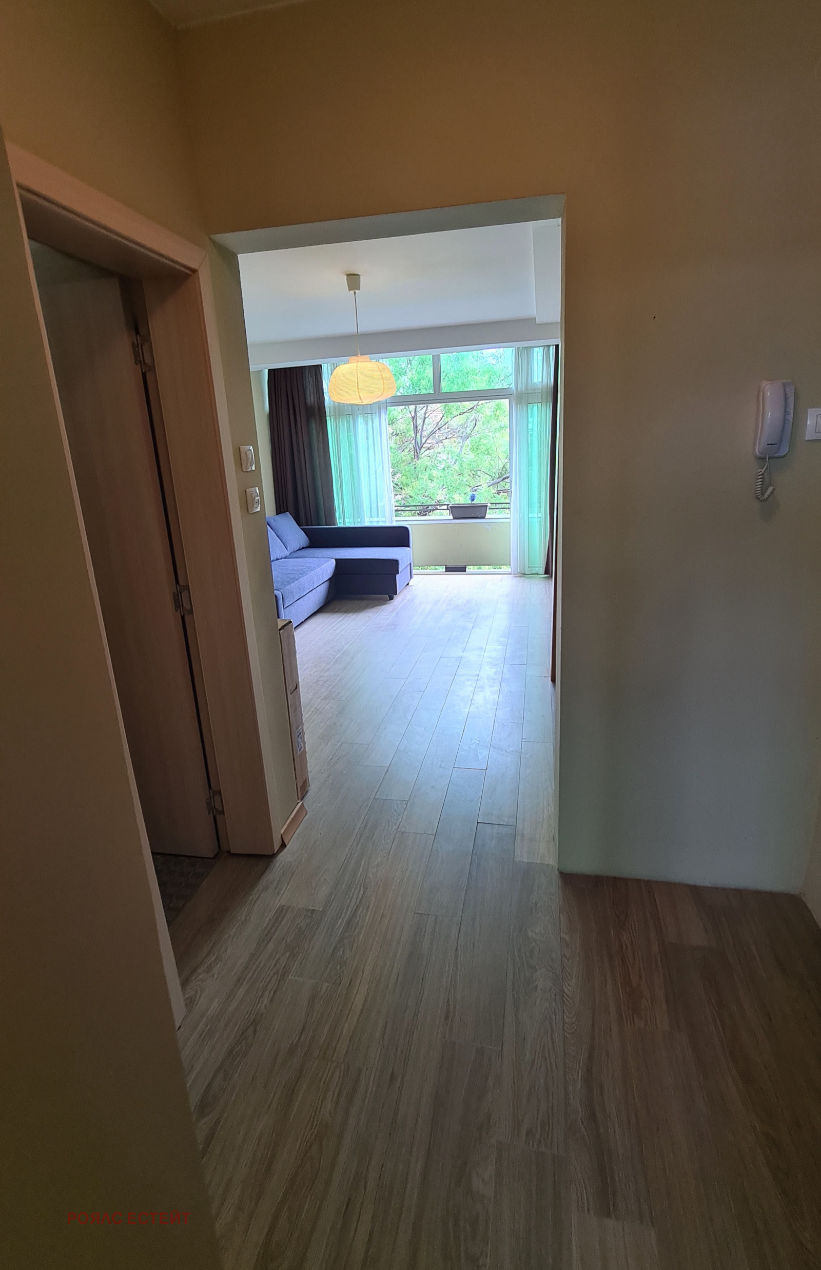 са расположени спалня с холна част баня и тоалента в едно, и много голяма веранда.Целия апартамент е след луксозен ремонт, обзаведен и готов за нанасяне.Има възможност да се обособи и втора спалня.За повече информация тел: 0899 857782 Николов.