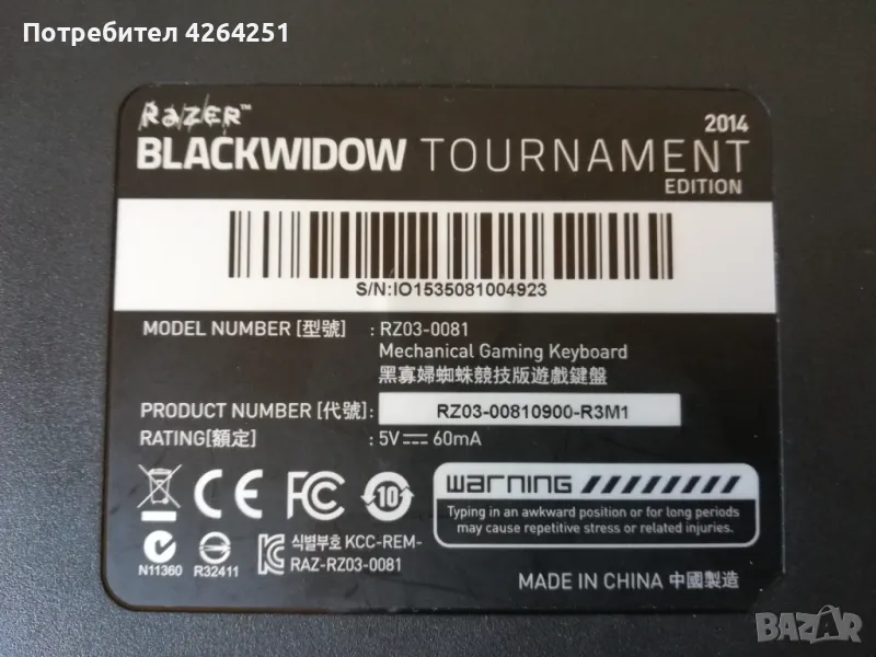 Razer Blackwidow Tournament 2014 Edition → Обява 47600834