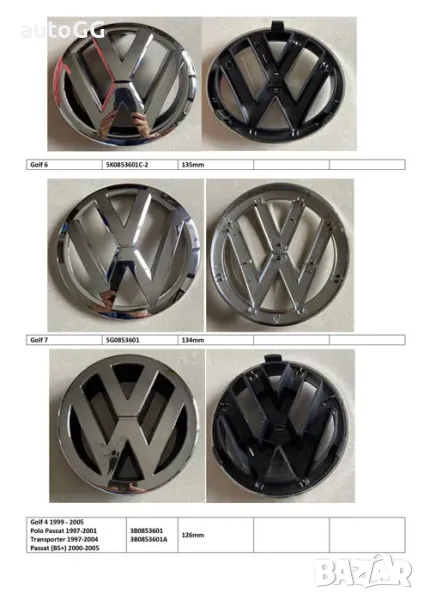 Емблема VW Golf/Passat/Touran/Polo/Transporter/Jett/Kaddy/Bora