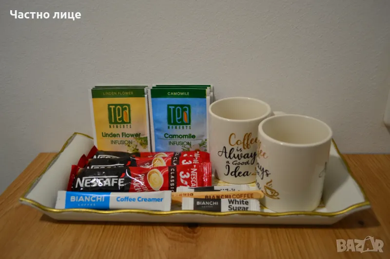 Безплатен WiFi и телевизия в апартамента, както и спални принадлежности (олекотени завивки, възглавници, чисти и свежи чаршафи и кърпи, безплатни течни сапунчета и шампоани) и кафе/чай. Осигурени са и ютия, сешоар и прахосмукачка. Половината от височината на апартамента е под-земята, което спомага за по-шенсото му отопление. Осигурени са и 2 електрически радиатора.