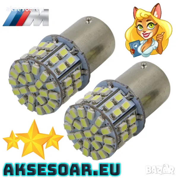 2 бр. Габаритни LED крушки BAY15D габарити стопове 1157 с 50 SMD лед диода DC 12V 24V