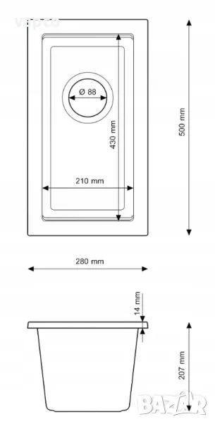 Прецизността, поддържана по време на производството, позволява перфектно прилягане на мивката към дори в най-малкия шкаф. Дизайнът на сифона позволява повече пространство под плота. Това ще ви даде допълнително място за контейнер за отпадъци или кухненски принадлежности. Сифонът е със система против преливане, както и с възможност за свързване на пералня или съдомиялна машина. За улеснение на монтажа към мивката е приложена инструкция за монтаж.