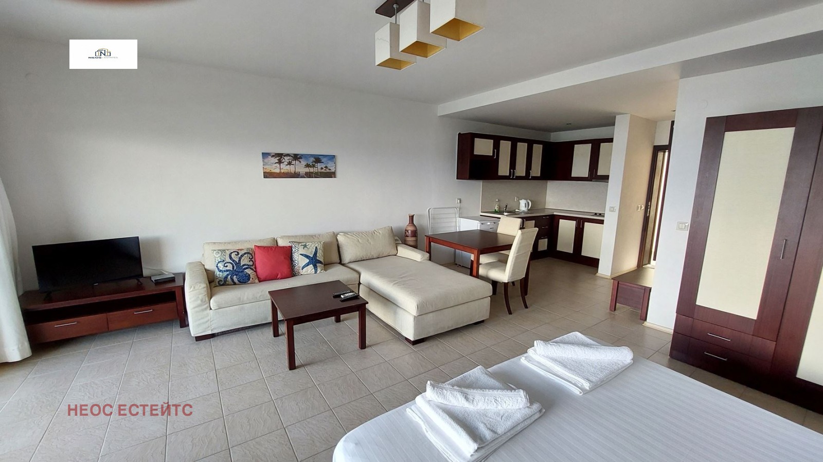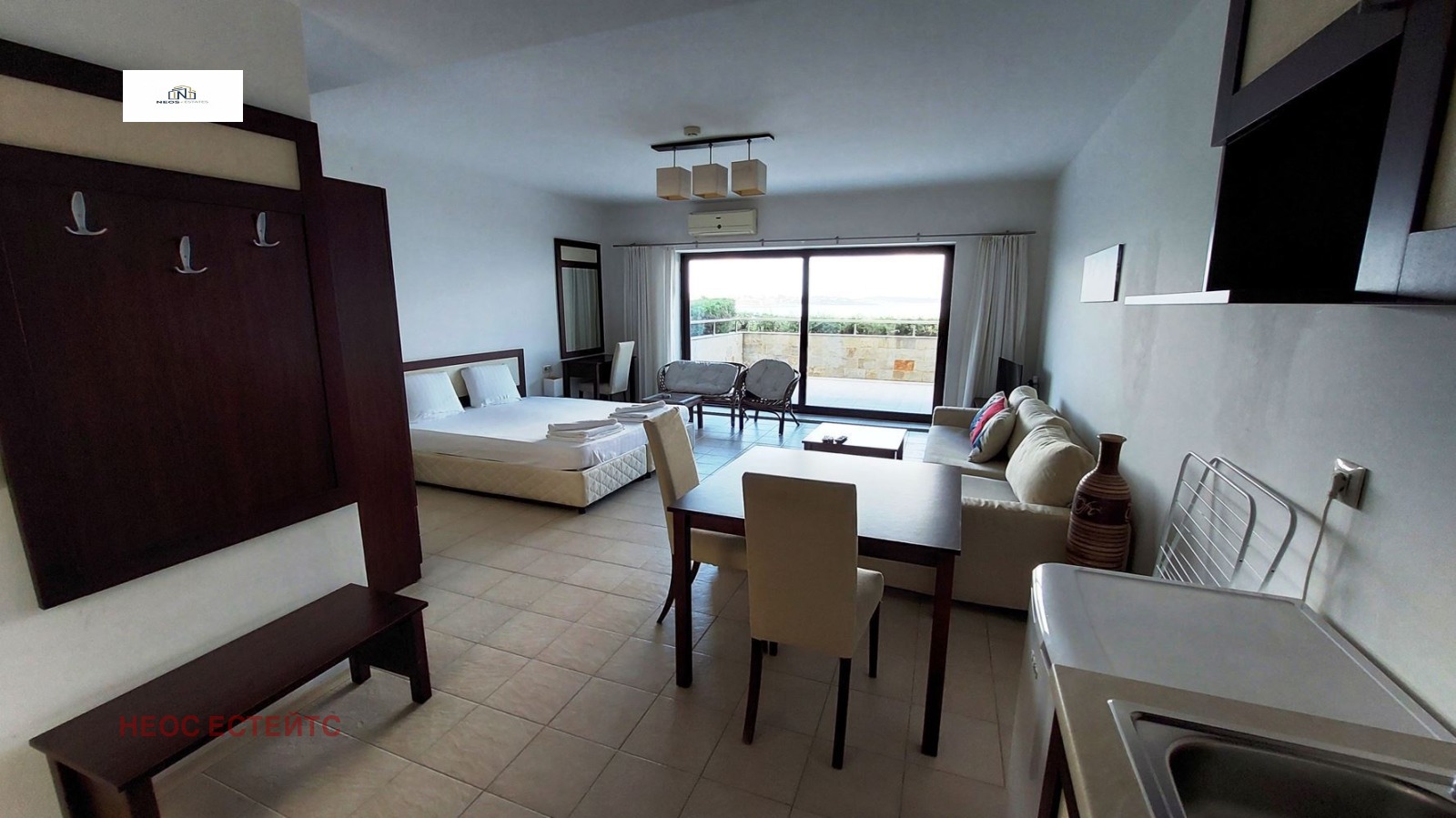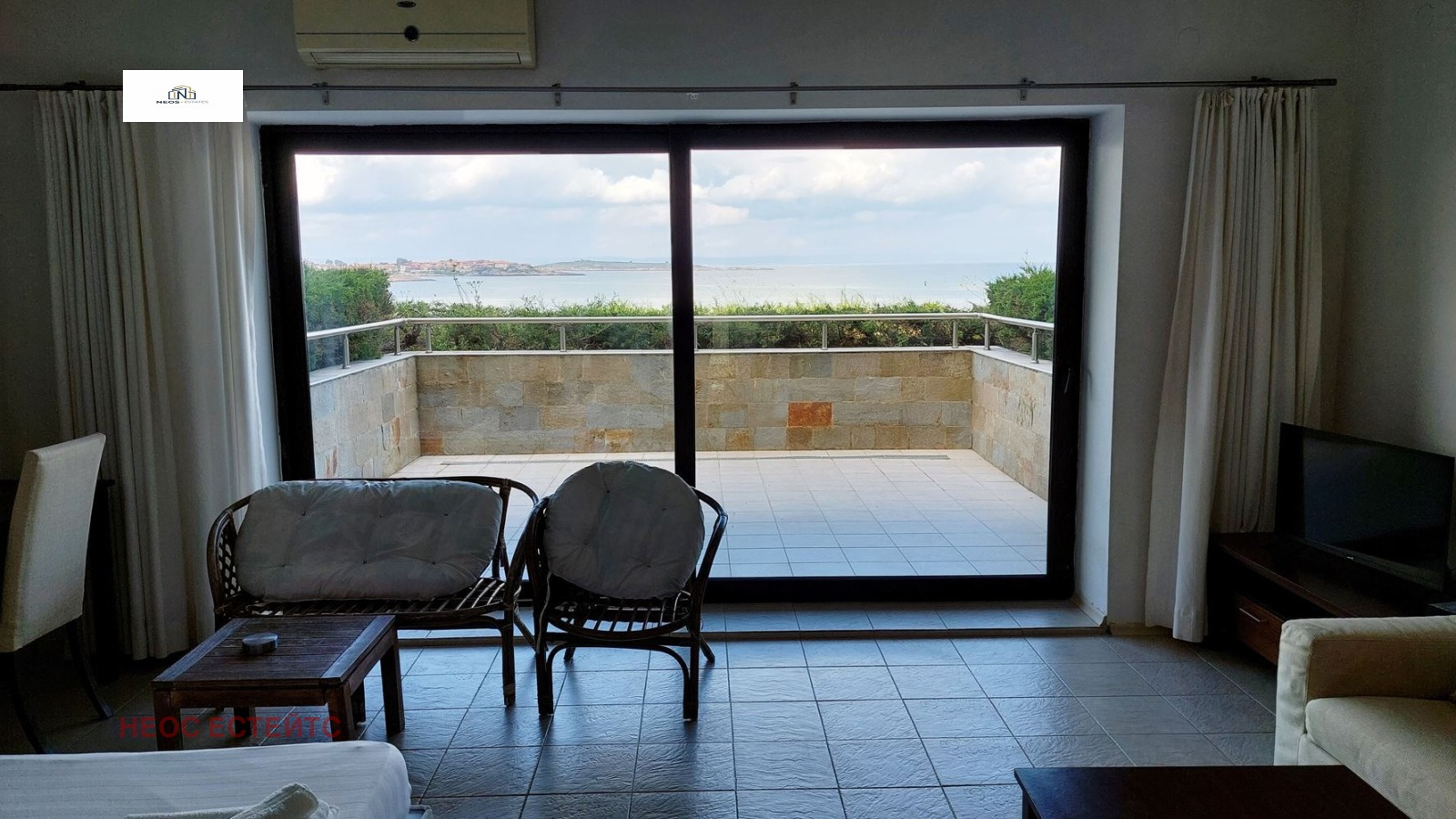 Продава се студио, с гледка към морето, скалите и Созопол! Апартаментът е в комплекс от затворен тип, построен на самия морски бряг! Общата му площ е 75.65 кв.м. и се продава с наличното обзавеждане! Състои се от просторна стая с кухненски бокс, с обособен кът за спане и дневна зона, просторна веранда с панорамна гледка, баня с тоалетна.. Комплексът е подходящ и за постоянно пребиваване! Целогодишна поддръжка и охрана. Таксата е 15 Евро за кв.м. годишно.