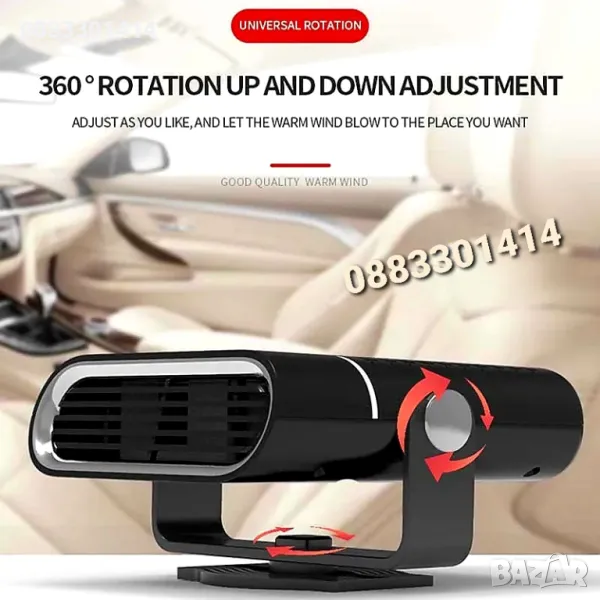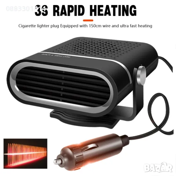 С тази уникална печка, може да включите в запалката на колата и веднага да започне да духа топъл въздух, с който да размразите прозорците, както и да стоплите купето.