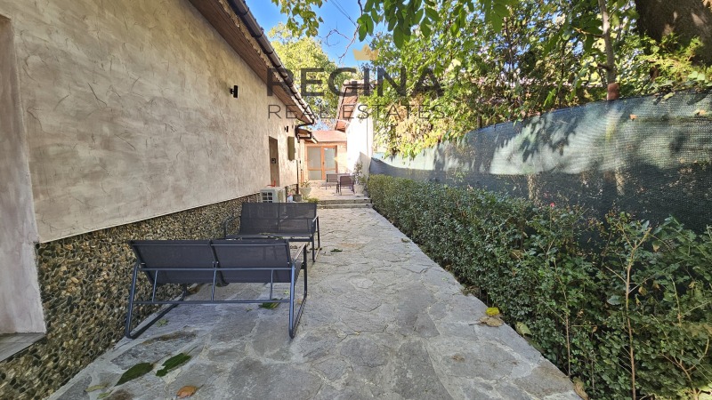 Дворното място е с площ 218кв.м, красиво озеленено и добре поддържано и има кътче за отдих.