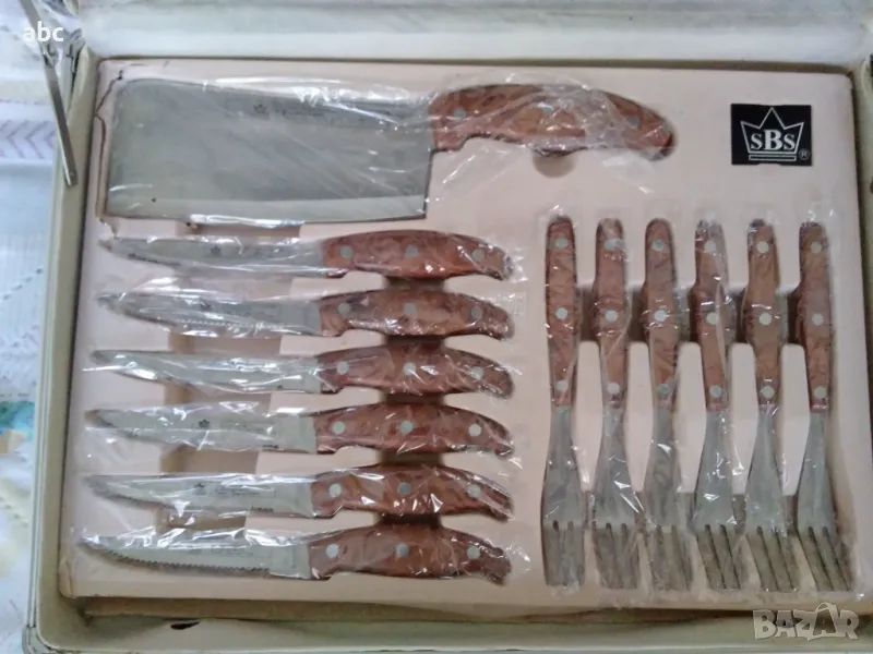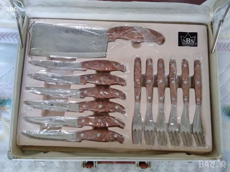 Ножове вилици лъжици ножици масат на фирмата SBS .комплект нов не ползван в куфарче.Опаковката има леки забележки всичко е в перфектно състояние.Подариха ми много по- голям комплект и този е в повече.ЛИЧНО ПРЕДАВАНЕ