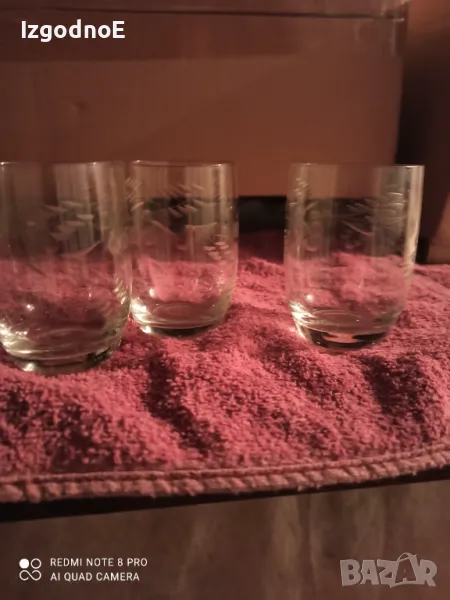 3бр чаши гравирано стъкло от соца → Обява 47604315