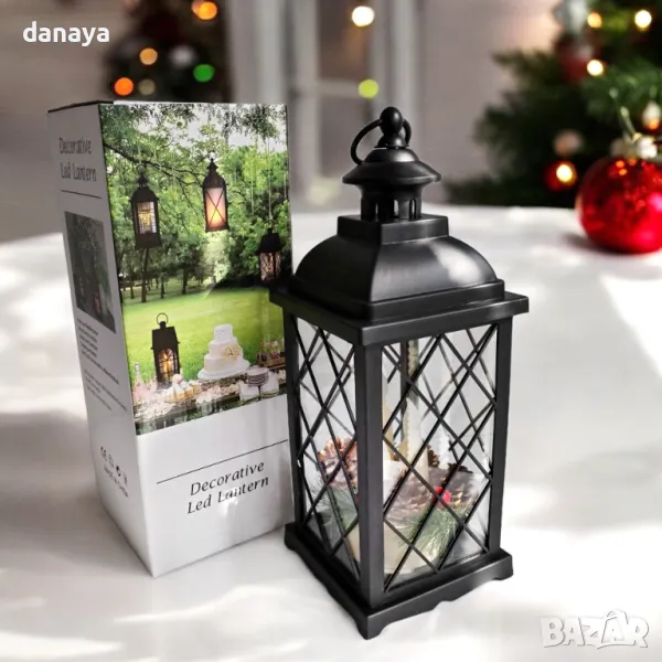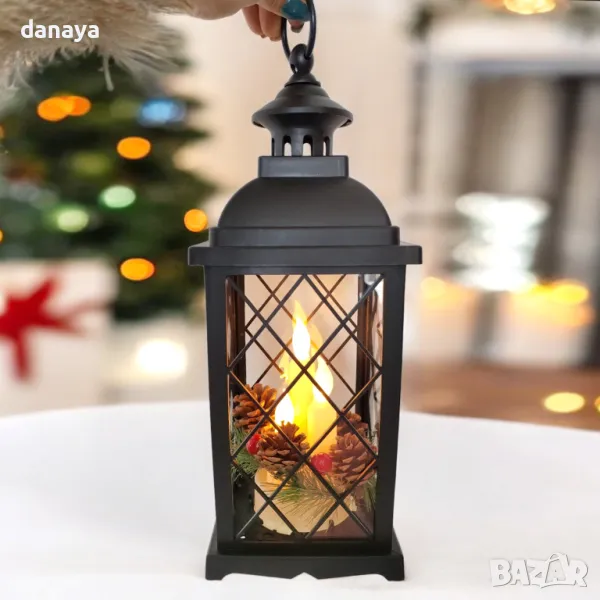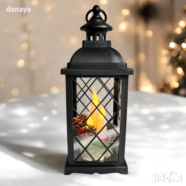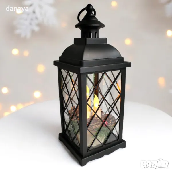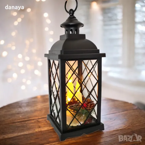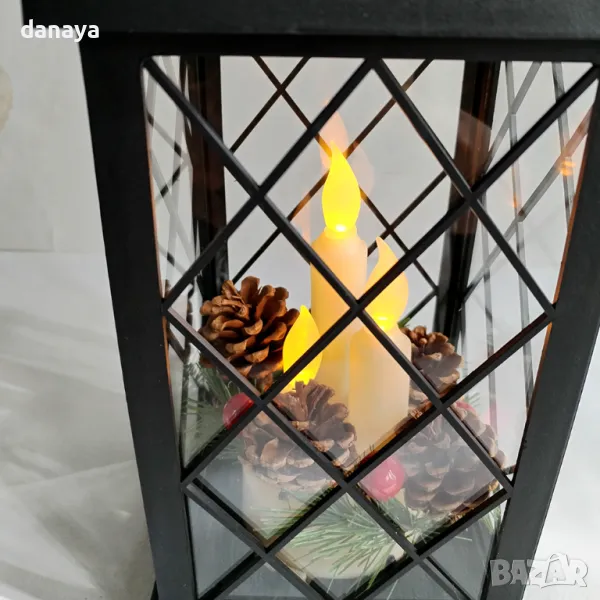 коледен фенер, фенер с ЛЕД свещи, електронен коледен фенер, празнично осветление, декорация с фенер, ЛЕД фенер за