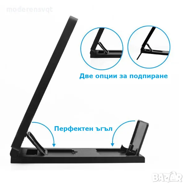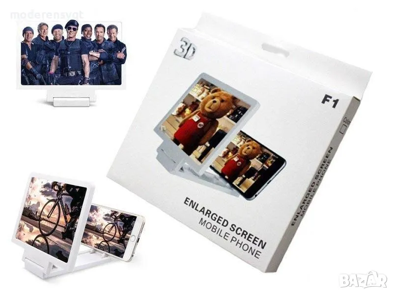 3D увеличителен екран за телефон – увеличител ще превърне екрана на телефона ви в истинско кино. 3д увеличител за телефон е гениална технология, която увеличава изображението до 3 пъти и придава на това, което виждате, 3D ефект и дълбочина, а оттам и реалистични изживявания. Дори да имате лаптоп или таблет, телефонът винаги ще бъде вашият най-верен помощник. Удоволствието от гледането на любимия ви сериал или филм се губи, когато сте на малкия екран. За да прочетете текст, трябва да го увеличите, така страницата се разфокусира. Този проблем може да бъде избегнат с уголемител за телефон. Страхотна добавка, която за секунди увеличава изображението и се пренасяте в друга реалност. Включете функцията си „Auto –rotate screen” и се насладете на домашното кино. Поставката е изключително елегантна и семпла. Тя представлява своеобразна лупа за телефон. С нея телефонът става увеличителен екран за четене и можете да се насладите на любимата си книга, статия или каквото друго четиво имате под ръка. Също така, напрежението в очите от продължителното взиране в екрана ще отслабне и няма да им вредите толкова много. Целта на увеличително стъкло за телефон е да виждате ясно всичко, без да се налага корекция от ваша страна. Какво по-хубаво от това? Телефонът ви става своеобразно кино и четец за книги. Чудесен подарък за всеки, който има забързано ежедневие и телефонът му е най-добър приятел.