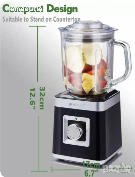 Блендерът разполага с топлоустойчива и удароустойчива стъклена купа, иновативна система за въздушно охлаждане за оптимална работа на двигателя, мощен мотор и ергономичен дизайн за повишена ефективност и лесна употреба.