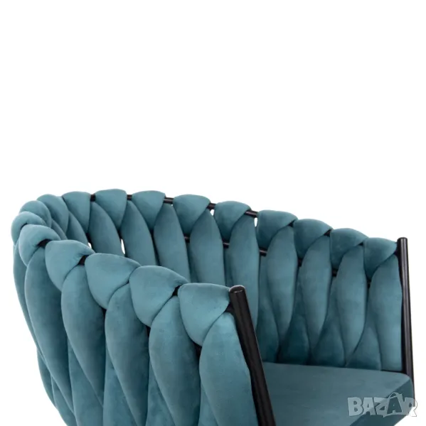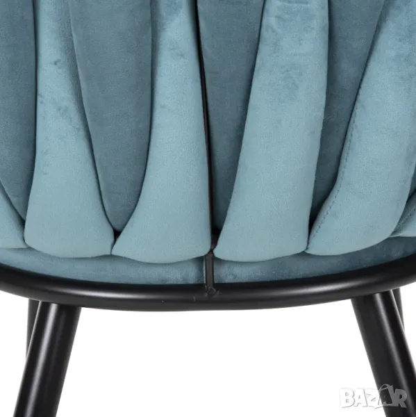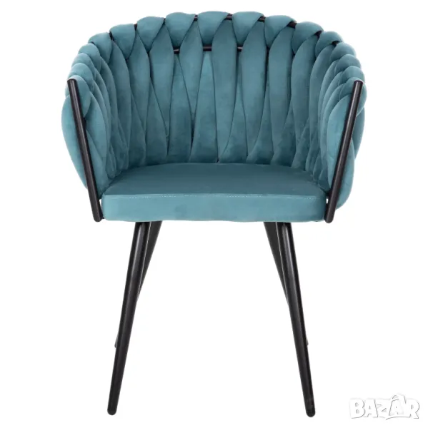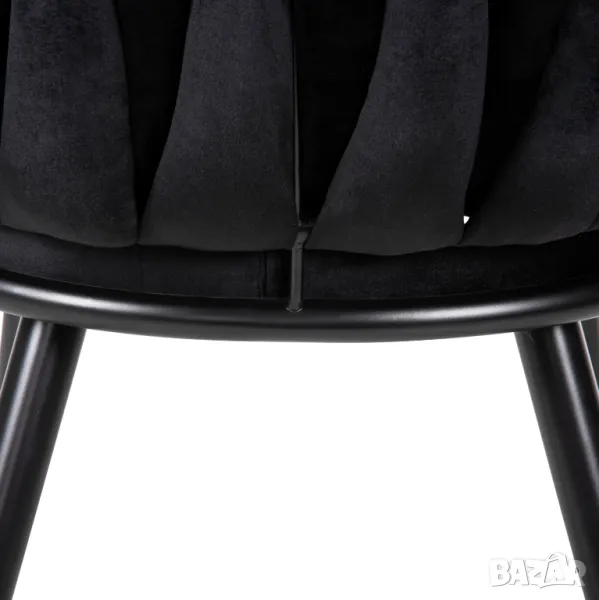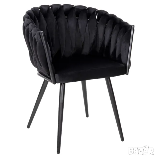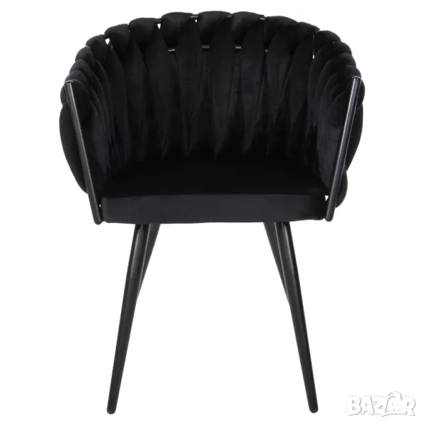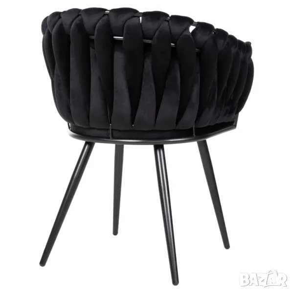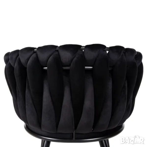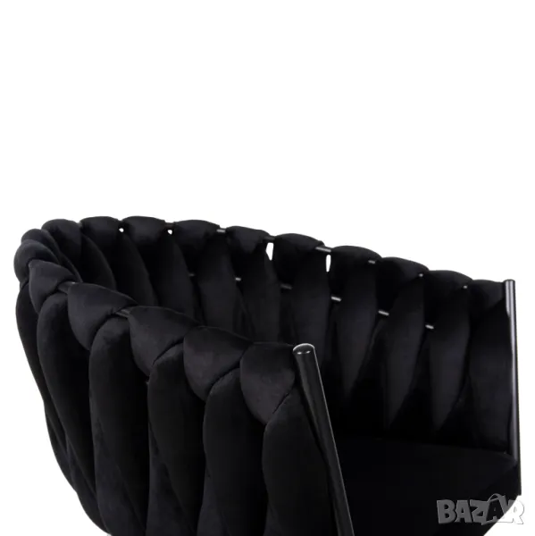 LUANDA е стол с кадифена дамаска и ЧЕРНИ метални крака, който има всичко, което искате от подобна мебел. Има полукръгъл гръб, а гърбът се състои от широко въже от пяна, вплетено върху металната рамка и със сигурност ще бъде център на внимание, където и да бъде поставен.