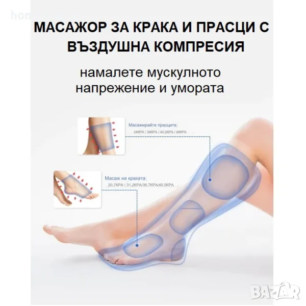 Цялостен масаж за стъпала и прасци с въздушна компресия: