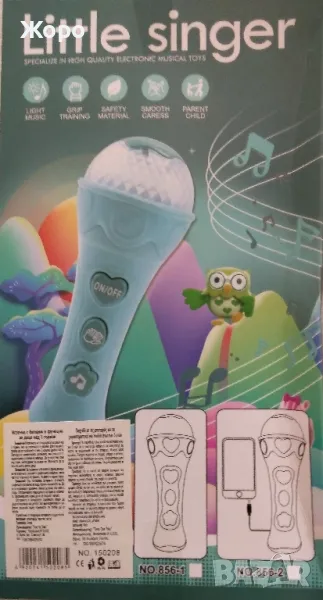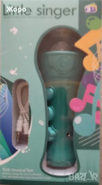 Детски микрофон със забавни звукови ефекти и песни. Музикална играчка на батерии с различни мелодии и светлини също може да се свързва с телефона и други музикални системи , което я прави по атрактивна и интересна за децата