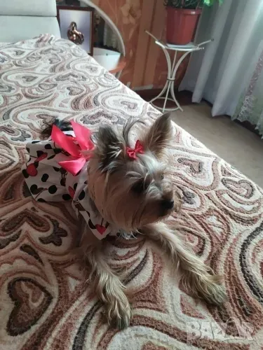 Бяла рокля с червена панделка, за куче и котка.
